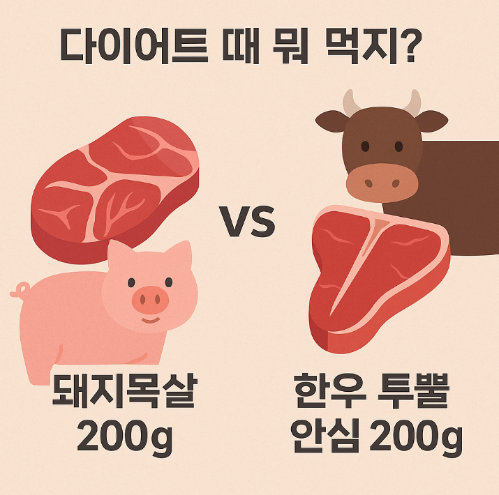 다이어트 고기 선택 ✅ 돼지목살 200g vs 한우 투뿔 안심 200g