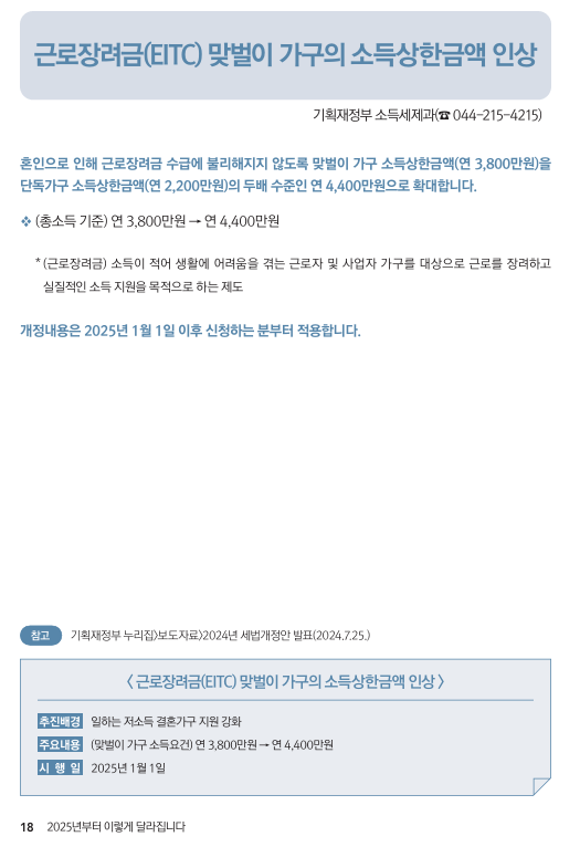 📢 2025년 근로장려금(EITC) 맞벌이 가구 소득 상한금액 인상