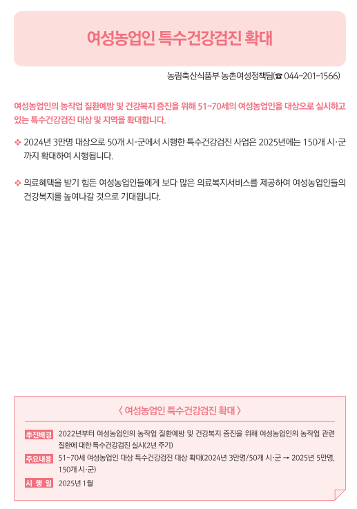2025 대한민국 정책브리핑 - 여성농업인 특수건강검진 확대