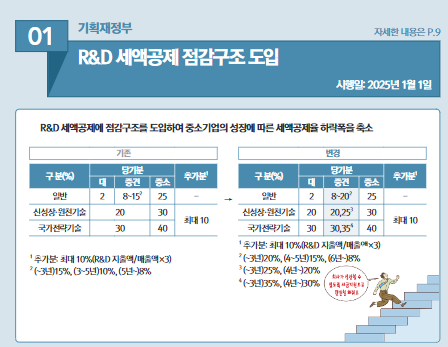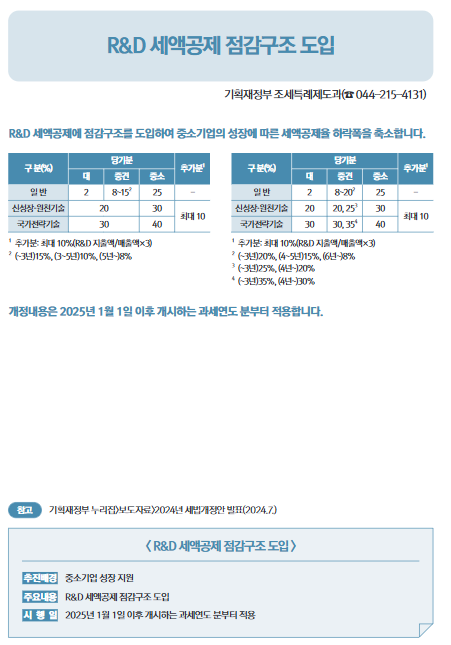 2025년 1월 1일부터 R&D 세액공제에 점감구조가 도입됩니다.