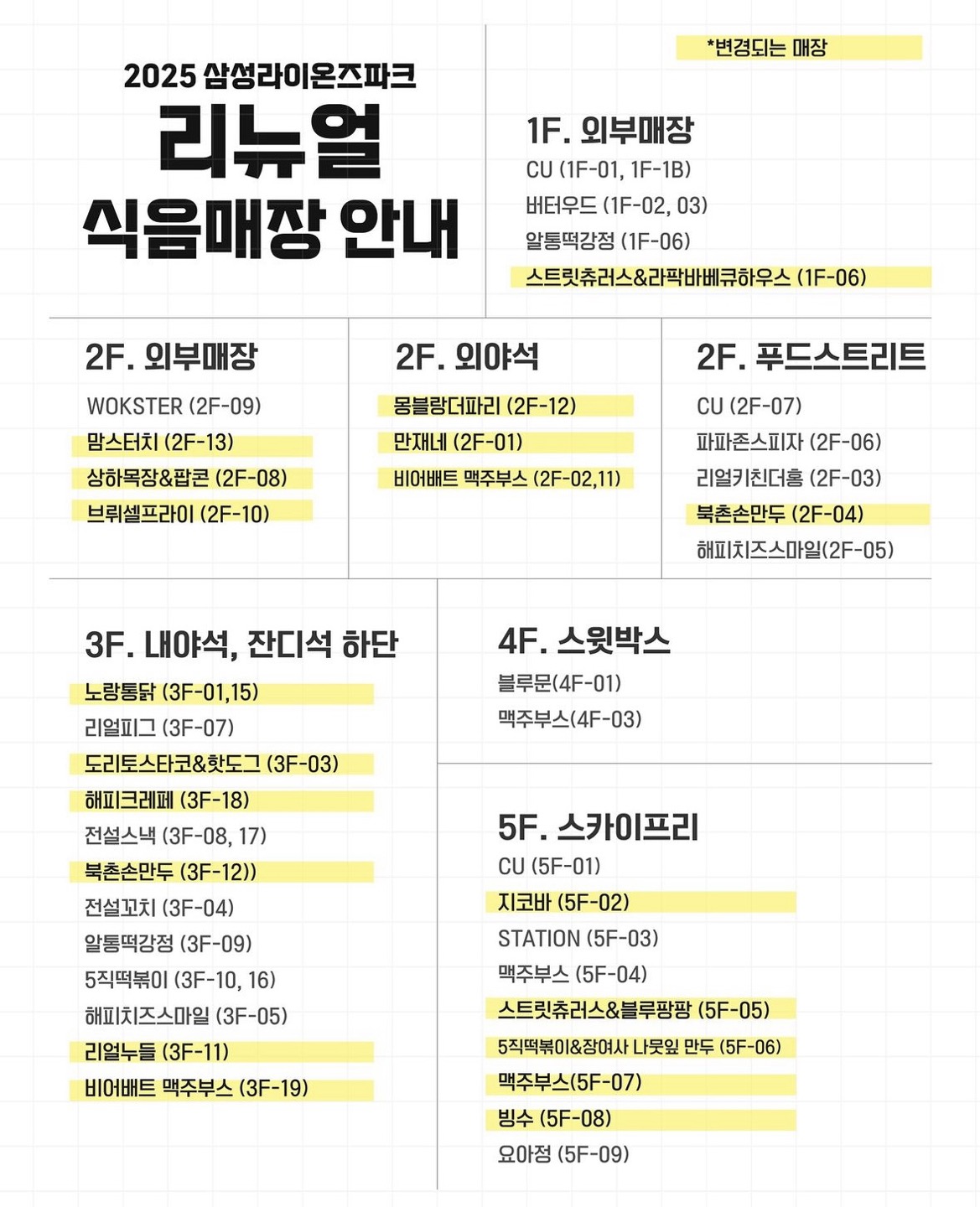 2025 삼성라이온즈파크 리뉴얼 식음매장안내