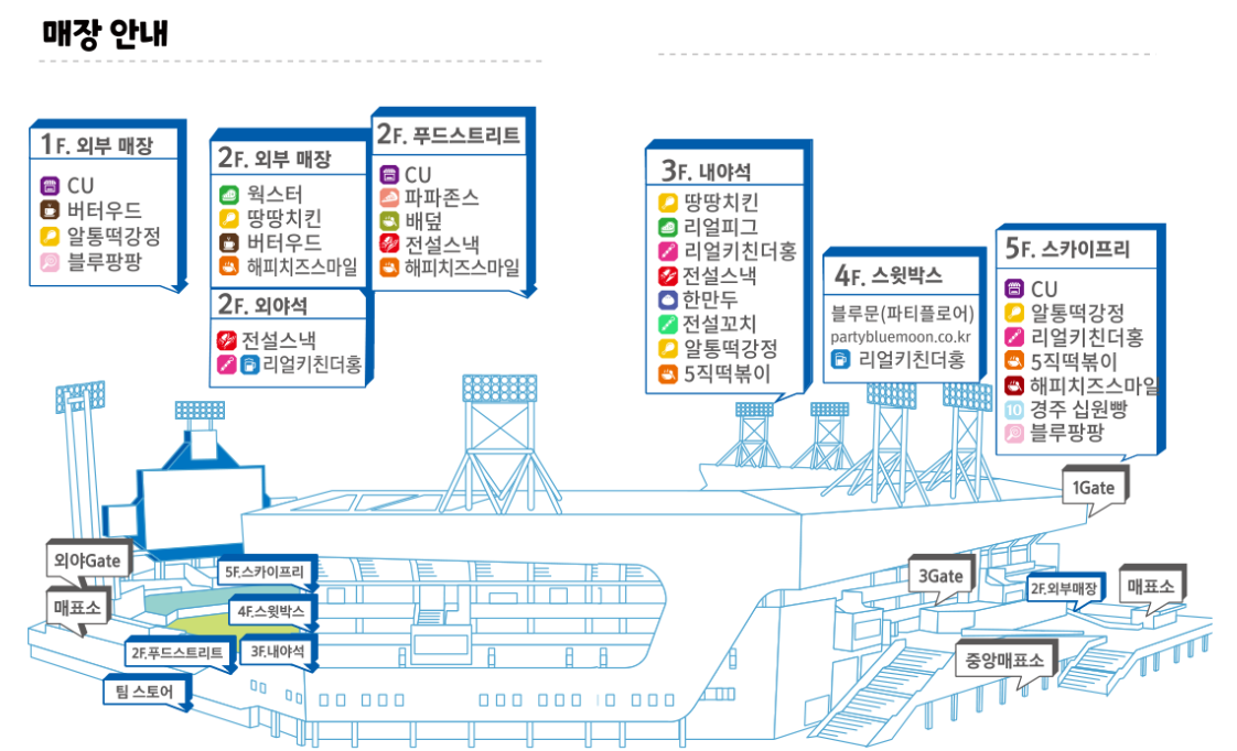 기존 삼성라이온즈 식음매장 매장안내도 입니다.