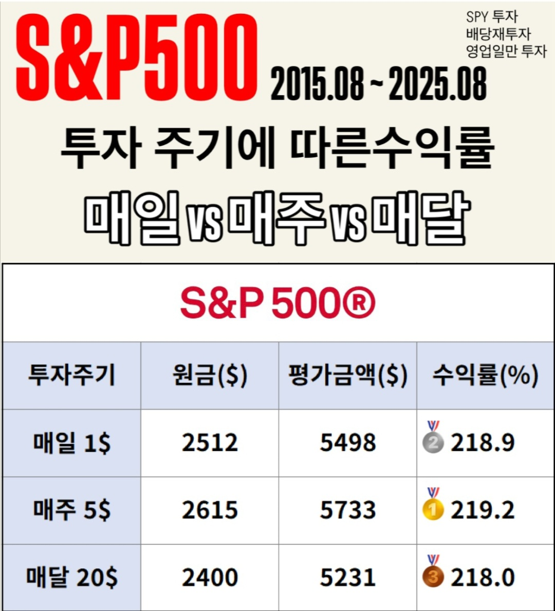기준: SPY · 배당재투자 · 영업일만 투자 (이미지 자료 요약)
